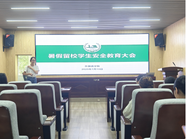 会上,毛婕结合近期高校安全案例,着重强调了防火防盗、防诈骗、实验室与宿舍用电安全等事项。她要求留校学生严格遵守学校规章制度,做到“非必要不晚归、离校必报备”,同时提醒大家注意极端天气防范,保护好人身财产安全。武巧琳解读了《外国语学院暑假留校学生管理办法》,明确了每日打卡、突发情况上报等流程,公布值班教师联系方式以保障信息畅通,并详细讲解了应急处理、求助渠道等安全须知。在交流环节中,学生代表就自习室开放时间等问题提问,与会老师逐一进行了解答。留校学生表示,通过此次会议提升了自身安全意识,将积极配合学院管理。
