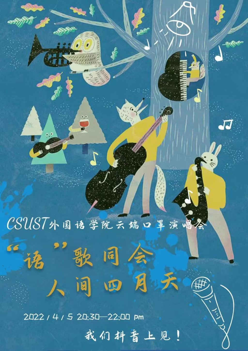 据介绍,本次演唱会主题为“‘语’歌同会,人间四月天”,旨在感谢所有为抗击疫情做出贡献的人们,弘扬校内外师生守望相助、同心抗疫的正能量,用音乐架起沟通的桥梁。演唱会收到了4.4万点赞和1200余条祝福评论,通过“云端”,师生齐上阵,歌谣共传唱,祝福大家带着绿码和36.5的体温奔向人间四月天。