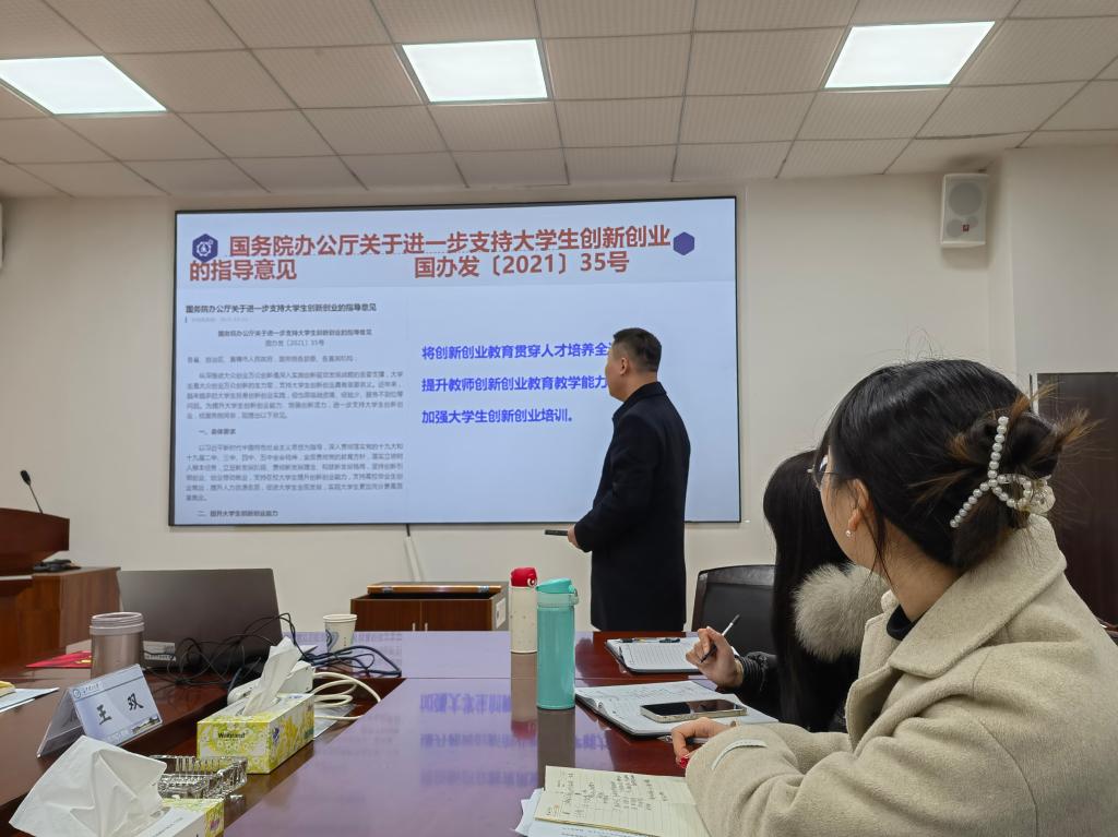 1月19日上午,外国语学院于文科楼A603会议室召开创新创业大赛项目讨论会,教育部全国万人优秀创新创业导师成忠莅临会议指导,外国语学院各项目团队指导老师共计17人参加会议,会议由学院党委书记文丽丽主持。
