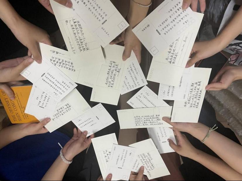 分享环节结束后,同学们互相交换了明信片和喜欢的书籍,并纷纷表示遇见了书友。书中自有颜如玉,书中自有黄金屋,在阅读中,同学们与书为友,以书会友。