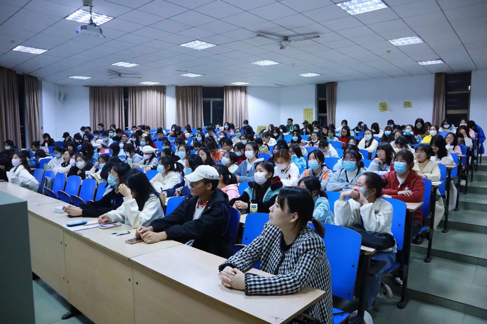 杨晨老师主要从公务礼仪的要义、公务着装与沟通礼仪两大方面向同学们讲述了应如何守礼。“礼仪是现代社会的行为准则与交往艺术。”她追溯到春秋时期,以百家对“礼”的看法、《周礼》和心理学“55387”定律为例,强调礼在古今社会的重要性。她结合日常生活与职场生活深入浅出地阐述了礼仪的评判角度(仪容、仪表和仪态)和原则(合适与尊重)。最后,杨晨老师结合自己的生活经验,生动地向同学们介绍比较实用的交际礼仪原则,如“六不谈五不问”原则、服装得体原则、关注他人原则等,与会学生认真听讲,讲座圆满结束。