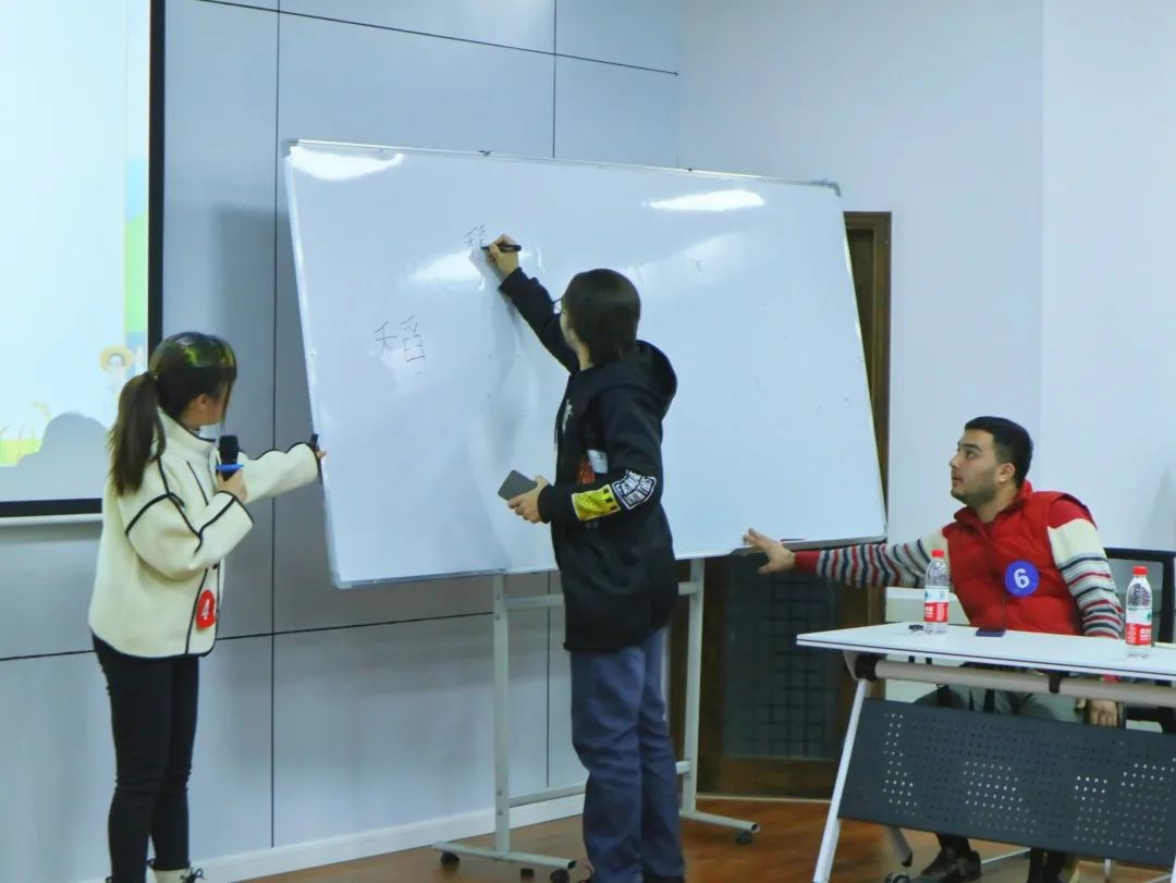 段茹青同学的授课主题为《味在中国》。她采用了情景剧的模式,让留学生们扮演食客。课堂中,她将教学重点放在了中国菜的五种基本味道,即“酸、甜、苦、辣、咸”,引导留学生们用“形容词+的”的句式结构造句。互动环节,留学生们热情高涨,看着老师拿出奖品,他们争先恐后地用味道的形容词造句,在互动中进一步理解了本堂课的知识。