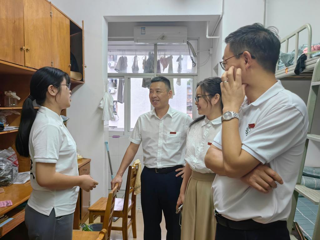 9月29日09月30日,外国语学院迎来了2023级本科生新生报到,为了更好地关怀新生、关爱新生、关心新生,了解198名新生入学报道后的校园生活适应情况,了解新生的学习、生活需求,教育引导新生提高安全意识、谨防上当受骗,外国语学院全体党政班子成员及全体辅导员深入学生宿舍走访,与学生们亲切交流。