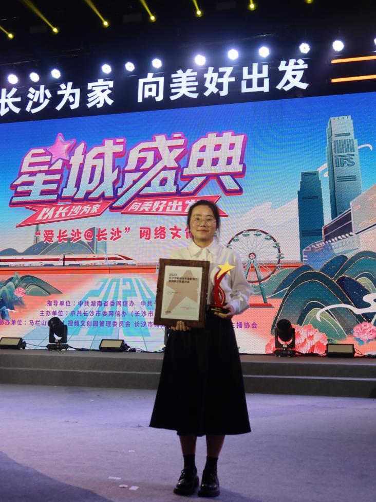 云顶国际vip8866外国语学院2022级英语专业本科生张婷在此次评选中获“2023年度长沙市网络正能量人物”荣誉,是获评该奖项的个人(集体)中唯一一位大学生。