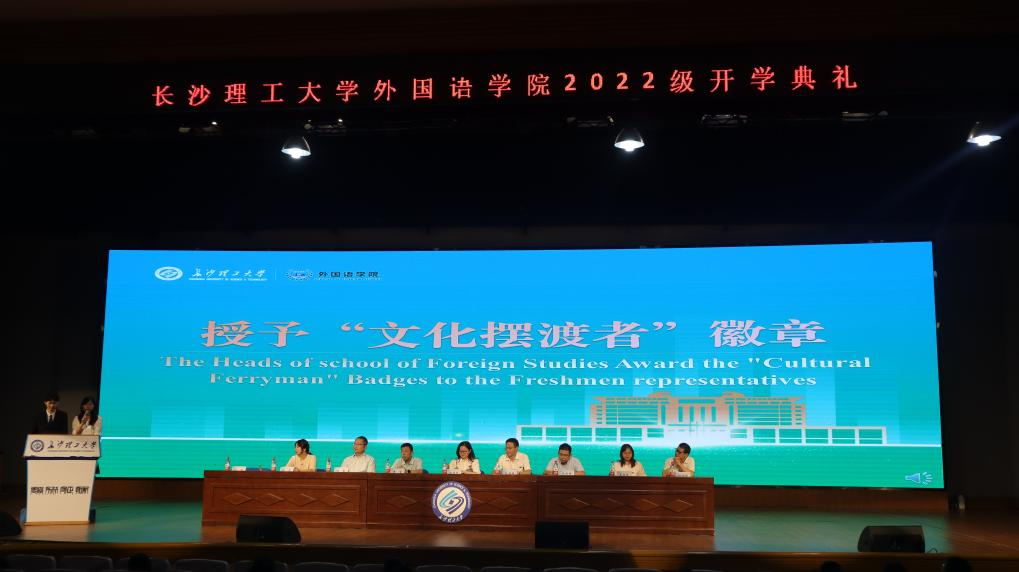 “这一枚绿色的‘文化摆渡者’徽章,不仅代表着外语人的身份,更凝聚着外语人‘文化摆渡者’的精神,承载着外语人的使命和荣光!”近日,云顶国际vip8866外国语学院在金盆岭校区五教大礼堂举行开学典礼,并为265名2022级新生举行授徽仪式和诵读文化摆渡者誓词活动。学院全体党政领导班子成员、系主任、新生班主任、辅导员,以及2022级本科生、研究生共同参加。