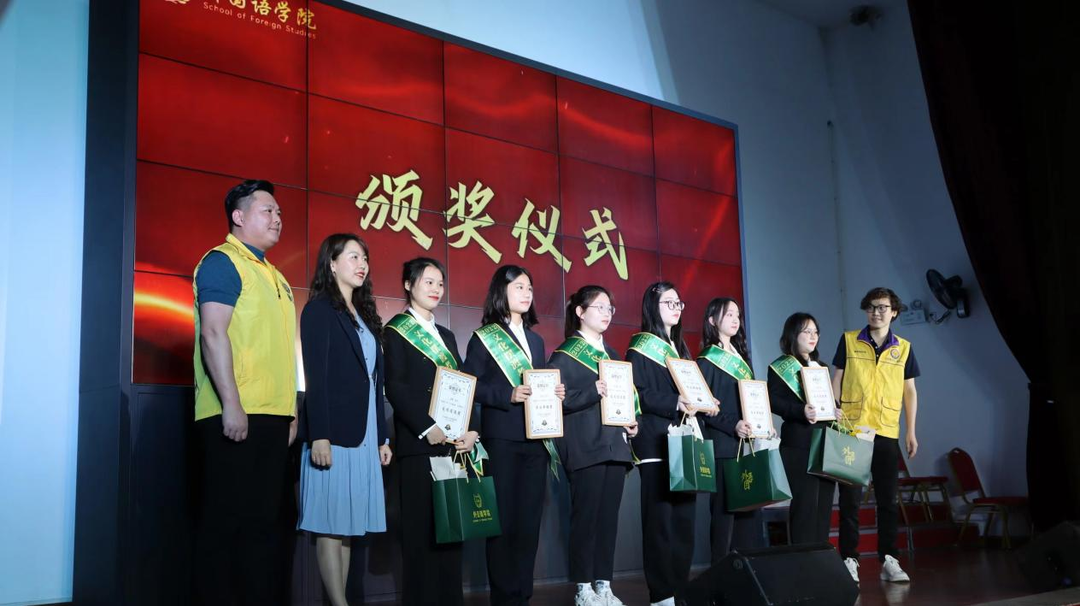 佛山市三水区白泥镇党委书记喻晓坤、佛山市晋雄实业有限公司董事长邱军等社会爱心人士,云顶国际vip8866关工委常务副主任王乃厚、校友中心主任郑延恒、学生工作部副部长陶传谱、校工会副主席王双、外国语学院党政领导班子及有关师生出席颁奖典礼。