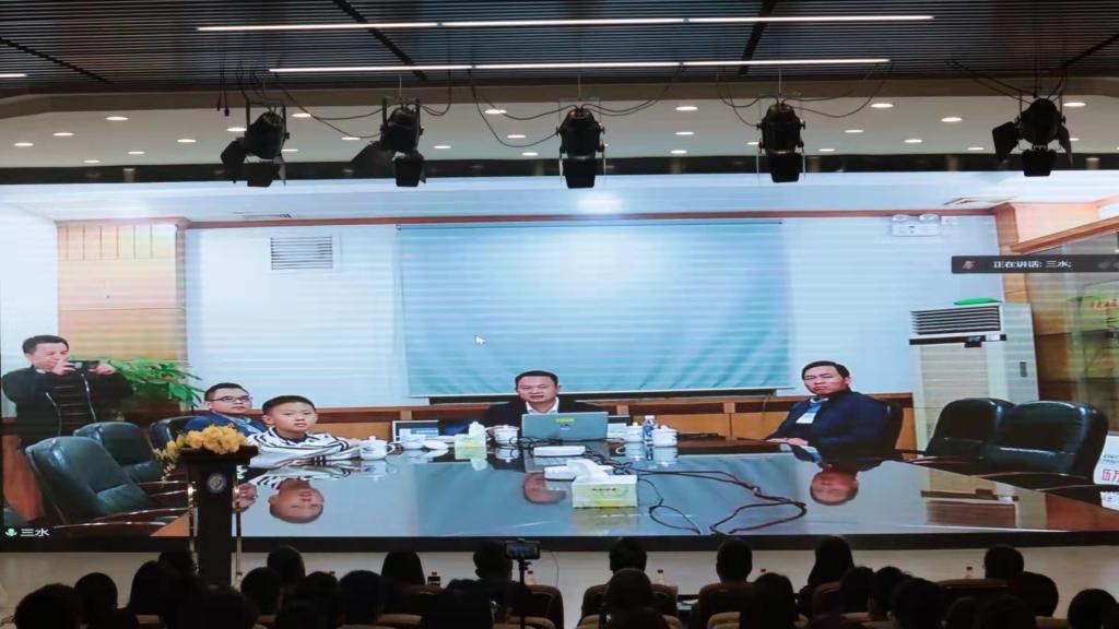 接着,学院师生在晚会现场与喻晓坤书记进行了视频连线。喻晓坤书记是佛山市三水区白坭镇党委副书记、镇长,广州大学公共管理学院校外实践导师,也是广东省第八批援藏工作队队员,2016--2019年挂任西藏自治区林芝市墨脱县墨脱镇党委副书记、常务副镇长,兼任佛山市援藏工作队秘书长。作为大力支持创立“文化摆渡者”专项教育基金的社会爱心人士,他分享了创立“文化摆渡者”专项教育基金的初心。他表示,本着“汇聚大爱、传递爱心、成就梦想”的使命,将长期坚定不移地关怀学院的老师和同学们、支持教育事业发展,为延续“文化摆渡”传统、弘扬“文化摆渡者”精神贡献一份力量。