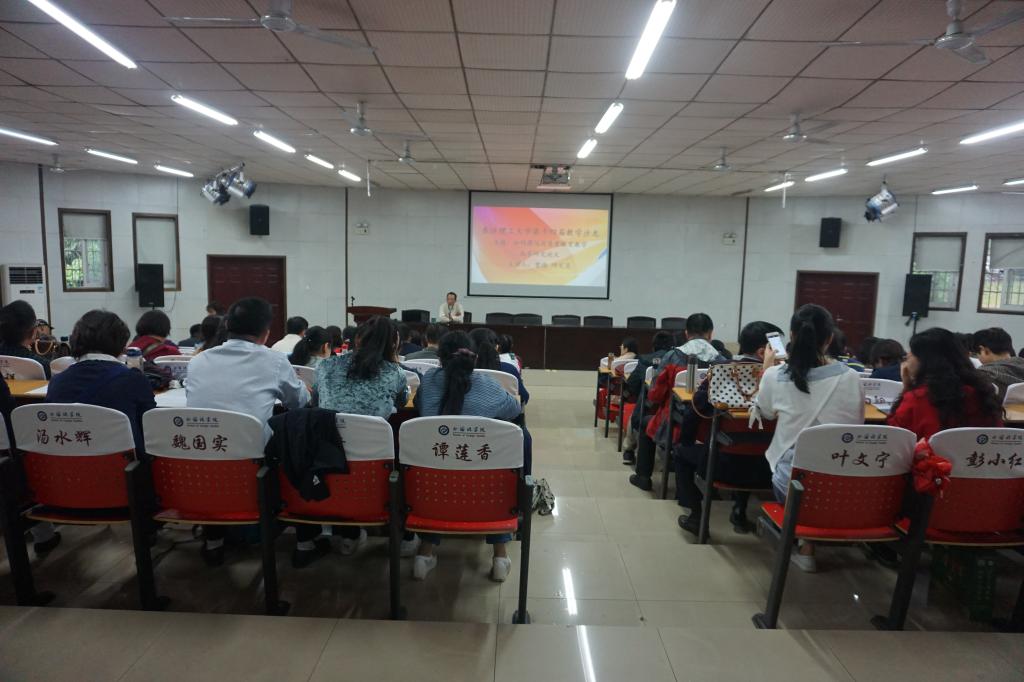 2018年10月9日下午,由云顶国际vip8866高等教育教学评估与研究中心及教务处主办、外国语学院承办的云顶国际vip8866第十四届教学沙龙活动在文科楼圆厅A100成功举办。本次教学沙龙特邀华中科技大学《高等教育研究》杂志副主编曾伟研究员主讲,我校高等教育教学评估与研究中心主任袁剑波主持,外国语学院院长段胜峰、副院长黄坚、黄月华、武俊辉出席,外国语学院全体教师以及来自学校其它16个教学院共200余名教师代表参加。