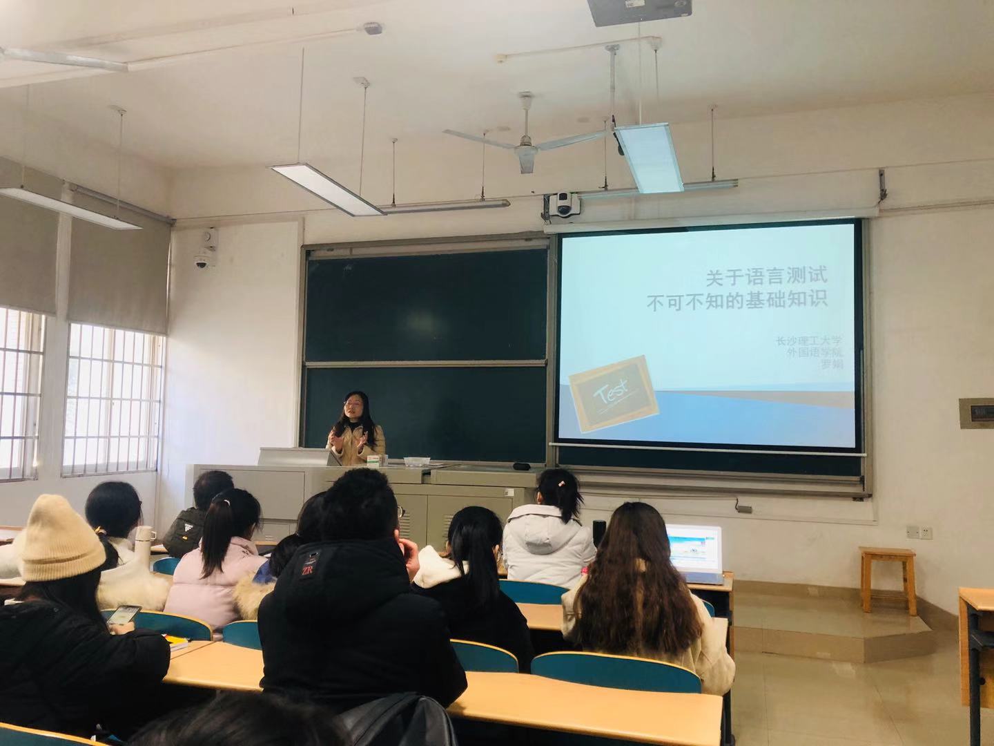 2019年12月3日,在文科楼A201, 应外国语言文学系邀请,罗娟博士给大三、大四学生做了题为“语言测试学的起源、发展和在中国的应用”的讲座。