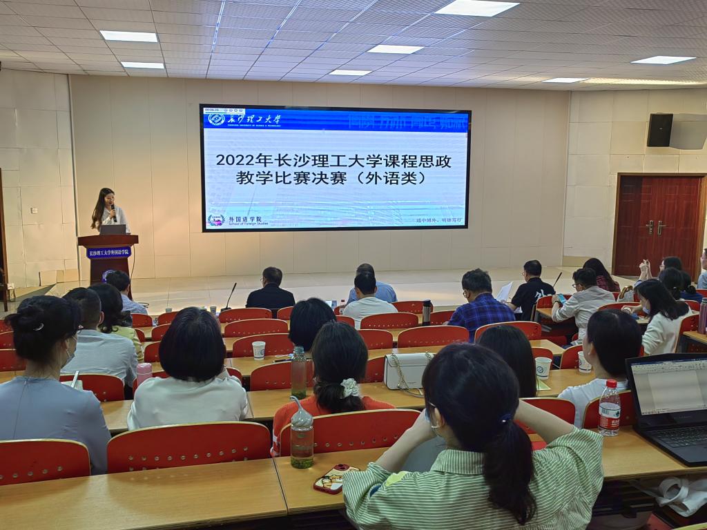 2022年5月15日下午,由我院承办的2022年云顶国际vip8866课程思政教学竞赛决赛(外语类)在文科楼A100圆厅举行,来自我院四个教研室的六支团队参加了比赛。受学院邀请,担任此次比赛的评委有湖南大学外国语学院刘正光教授、中南大学外国语学院院长李清平教授、湖南农业大学外国语学院院长胡东平教授、云顶国际vip8866外国语学院邓跃平教授和钟桂蓉老师。学院全体教师观摩了此次比赛。