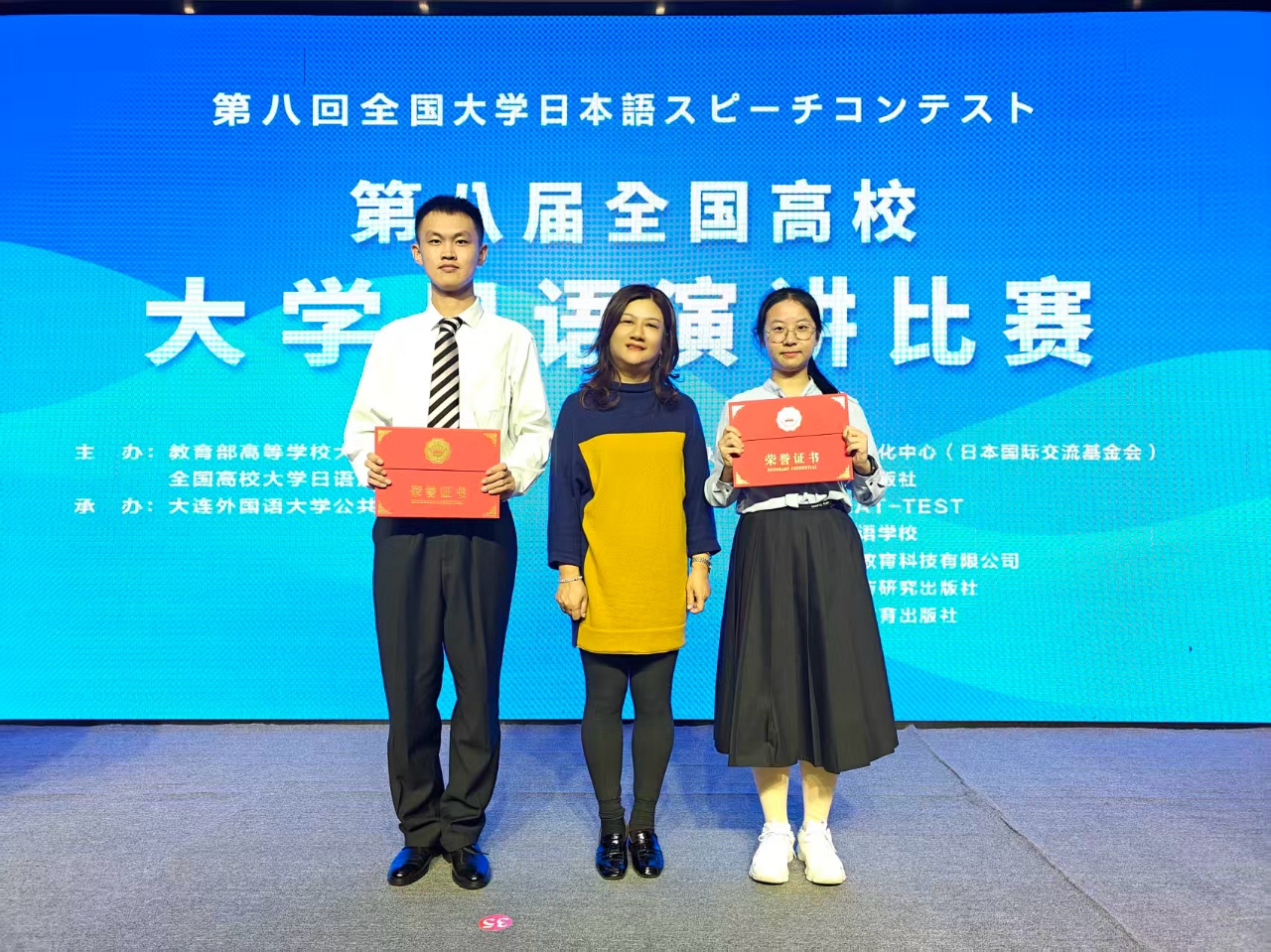 10月18日,由教育部高等学校大学外语教学指导委员会主办的第八届全国高校大学日语演讲比赛决赛在大连外国语大学落幕。在外国语学院教师的指导下,城南学院周宇星同学和经管学院彭胤维同学分别荣获全国一等奖、二等奖,实现了云顶国际vip8866在国家级日语竞赛中的历史性突破,展现了云顶国际vip8866高质量的小语种教学工作。