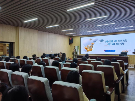 64日下午外国语学院在三教229报告厅召开了2025届研究生招生校内宣讲会。会议由学院分管研究生工作的姚尧副院长主持。学工办主任武巧琳科研与研究生办主任刘丽娟及学院21级本科考研学生50余人参加了此次会议。