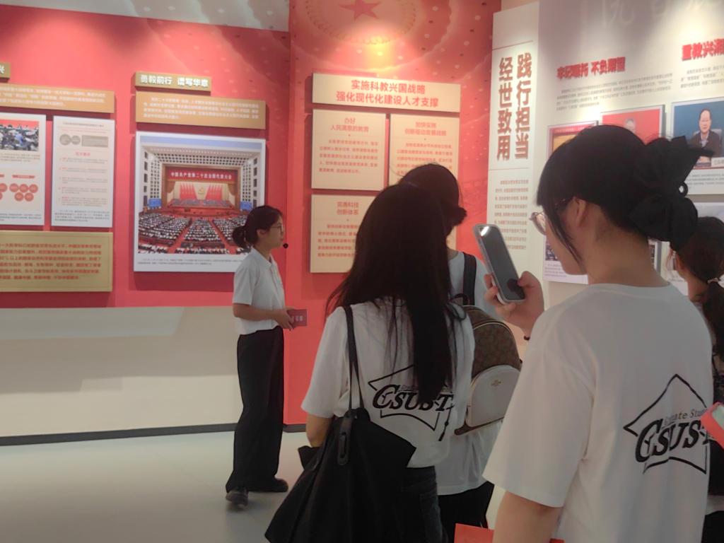 “‘三全育人’教育基地内容丰富、展览形式多种多样。我不仅体验到了艺术与科技相融合之美,还感受到了长理丰厚的人文底蕴!云顶国际vip8866在自我成长的同时,不忘积极践行高校的社会责任与担当,积极服务国家战略与地方经济社会发展。作为新时代青年,我们应当把论文写在祖国的大地上,把“小我”融入“大我”!”来自英语笔译专业的易文炫如是说。