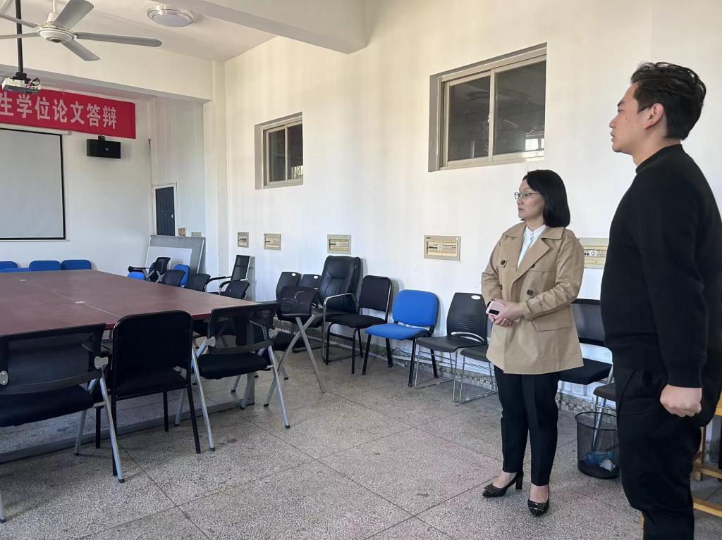 为切实做好当前保安全、促稳定各项工作,消除安全隐患,喜迎党的二十大胜利召开,外国语学院分别于10月7日、10月10日开展研究生活动室(教室)专项安全检查。学院党委副书记周芳、副院长武俊辉、研究生辅导员陈若晨参与此次安全检查。