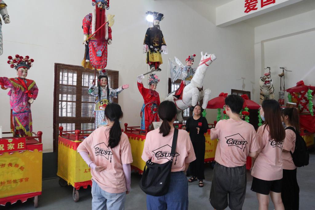 陈范兴老先生是湖南省首批省级非物质文化遗产项目传承人、长乐故事会总会长,也是岳阳地区唯一的国家级非物质文化遗产传承人。身为传承人,陈范兴老先生这些年带领队伍把抬阁故事带上了国内外各大舞台。如今已70岁的陈老先生依旧坚守初心,传承传统技艺,他同实践团的成员们说道:“我自己为什么这么大了还要下定决心搞好故事会呢,因为我把长乐故事顶在头上,把传承担在肩上,把发展建在心上。我生命不息,我就会传承不止。”并嘱咐大家,作为研究生,要用自身所学创造价值,为社会做贡献。陈老先生被大家亲切的称为“范嗲”。他带着实践团的成员们参观抬阁故事会文化中心,孩子们“玩”故事所需的头饰、服装、道具整齐的陈列在二楼展厅中,其中皆凝聚着非遗智慧、匠人精神。