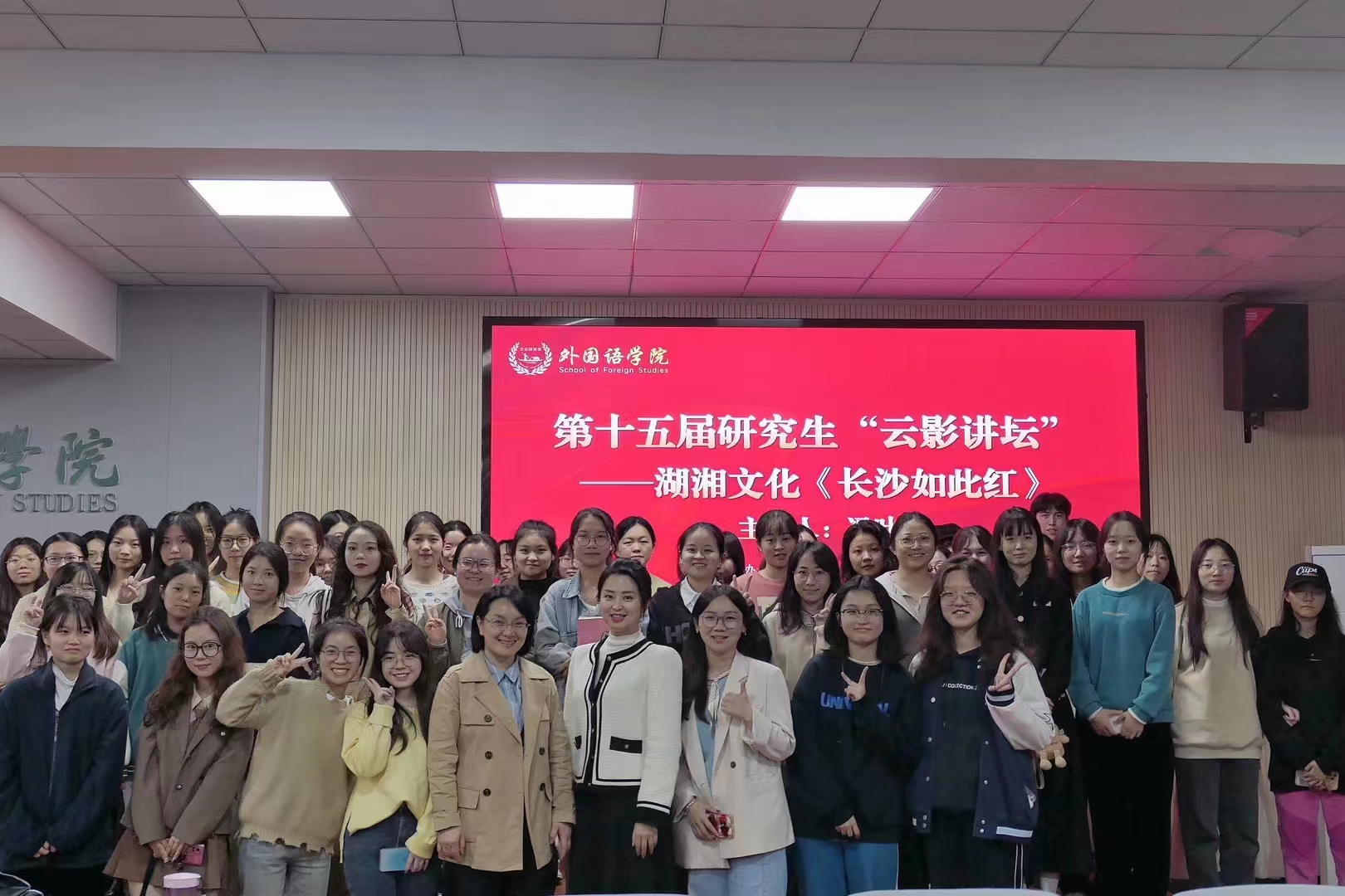 11月9日晚上19:00,国家高级礼仪培训师、市委宣传部基层优秀宣讲员冯叶在云顶国际vip8866金盆岭校区为外国语学院和设计艺术学院的同学们开展主题为《长沙如此红》的云影讲坛讲座,讲授湖湘文化,分享职场礼仪知识。