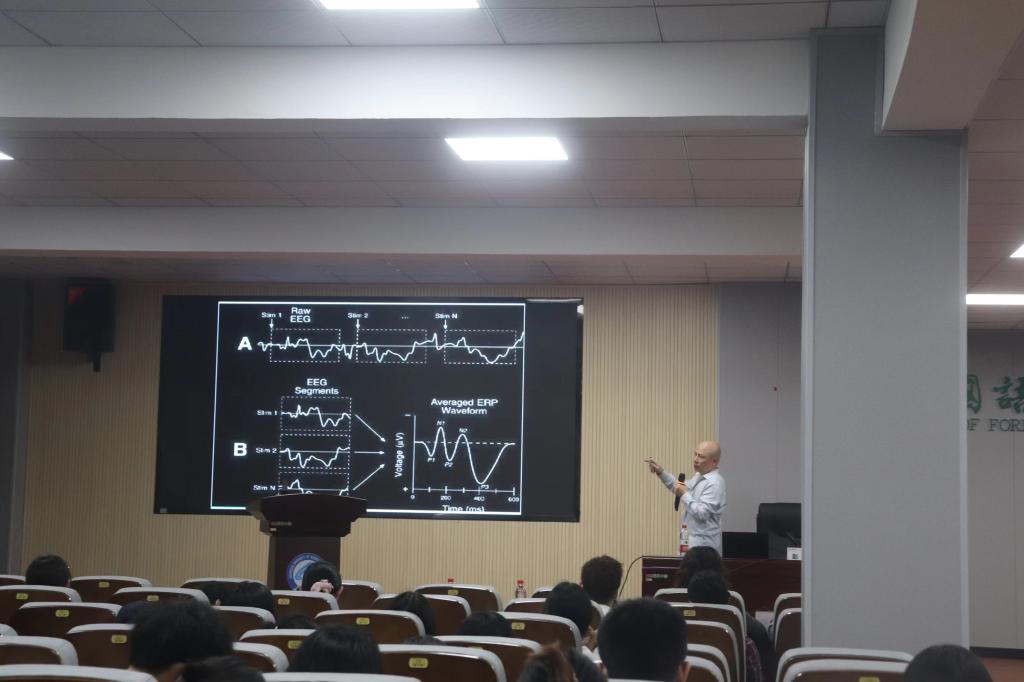 本场讲座聚焦于“大语言模型与跨学科语言学研究”,深入探讨了具体语言现象的心理与脑机制。首先,彭刚对大语言模型、语言学研究进行了简要阐述,让师生们对这两个名词有了初步认识。随后,彭刚利用脑电图实验和磁共振两种脑成像技术探讨了语言与大脑认知的关系。脑电图有非常好的时间分辨率,但是空间分辨率很差;磁共振技术的时间分辨率具有严重的滞后性,但是空间分辨率较好。彭刚利用这两种互相补充的技术,通过一系列实验最后确定了语言信息和话者信息加工的大脑模式。最后,彭刚通过数据和图表为大家深入剖析了三个跨学科语言研究实例,并分享了其研究团队近年来在普通话连续变调加工的机制、语境类别对音高感知的影响、声调语言和非声调语言的大脑网络模式等领域的丰厚成果,为在场师生们奉上了一场学术盛宴。