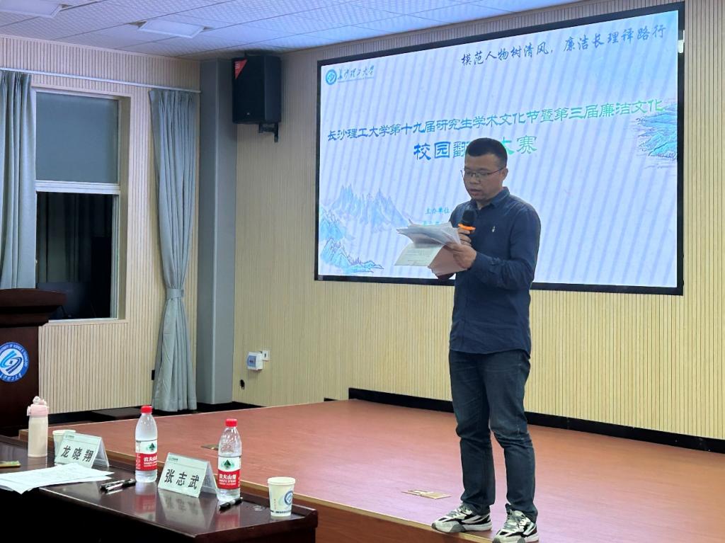 清若荷花不染尘,廉如梅花不畏寒。为深入推进长理廉洁文化建设,营造“学廉、倡廉、崇廉”良好的校园氛围,鼓励广大学子通过翻译展现学识,将“廉洁”二字永驻心间,云顶国际vip8866外国语学院于4月18日晚上7点在3教321报告厅举办了校第十九届研究生学术文化节暨第三届廉洁文化校园翻译大赛决赛。竞赛办主任张志武、英语系副主任龙晓翔、研究生辅导员龙洋出席现场并担任评委。
