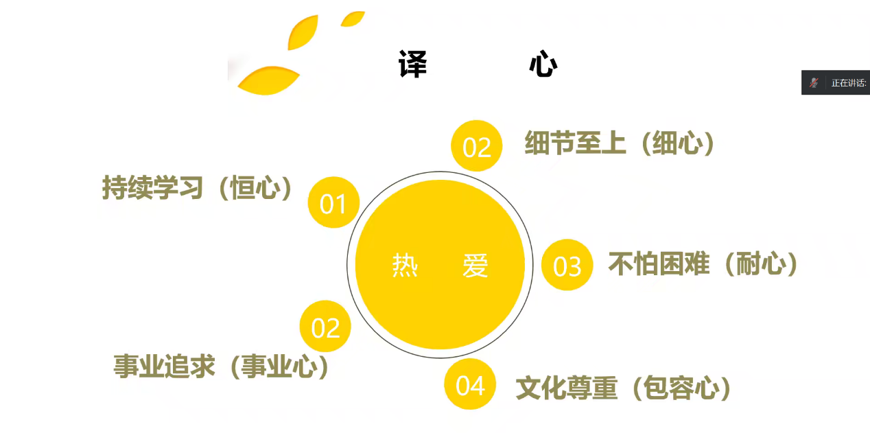 2024年9月5日上午,外国语学院特邀唐瑛老师为24级硕士研究生新生开展了主题为“从零开始做翻译实践”的线上专题讲座,旨在为新生们提供一个清晰的翻译实践入门指南,引导他们认识翻译实践的重要性,并为他们今后的学术研究和职业发展打下坚实的基础。