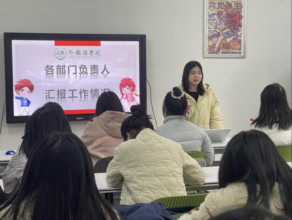 为推动外国语学院院研究生会的服务水平提质增效,1月7日下午3点半,院研会在三教220教室召开了第三次例会暨期末总结大会。本次会议由轮值主席邹嘉怡主持,研会全体干部参与。