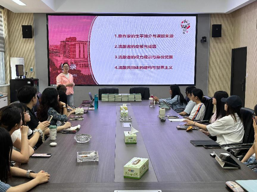活动伊始,肖璇钰以自己撰写的论文《南非戏剧〈天堂正在关闭〉研究》为例,深入浅出地分享了她的科研历程。她首先介绍了剧作家的生平背景及课题来源,随后从“流散者的症候与成因”“流散者的权力规训与身份觉醒”“流散共同体的建构与世界主义”三个方面展开分析,带领同学们领略了非洲文学之美。紧接着,贺梦洁聚焦于“元分析论文写作”,系统性地讲解了元分析的研究方法、数据整合技巧以及论文撰写规范。她结合自身经验详细介绍了如何高效检索文献、筛选有效数据并运用统计工具进行分析。她们一致认为,科研并非一蹴而就,需要耐心和坚持,而掌握科学的研究方法能事半功倍。