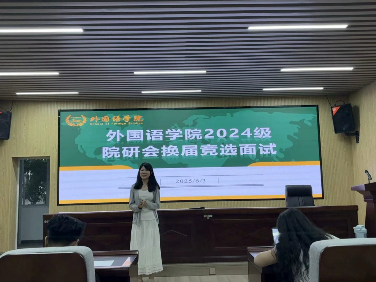 为持续加强学生骨干队伍建设,保障研究生会工作的有序衔接与传承,外国语学院于6月上旬开展了研会换届竞选面试和换届选举大会,完成了工作交接事宜。