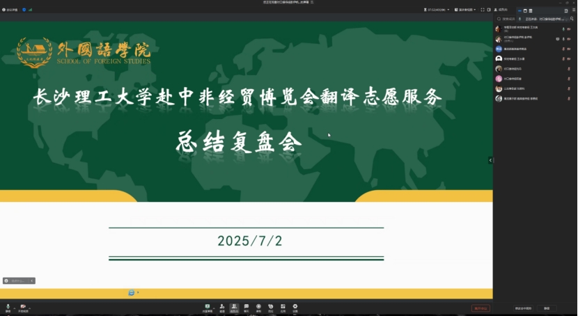 为构建更为专业的涉外服务体系、提升后续志愿服务效能,7月2日晚8点,云顶国际vip8866外国语学院组织召开第四届中非经贸博览会研究生暑期专业实践团翻译志愿服务总结复盘会,围绕6月12日至15日服务工作展开全面总结。各岗位实践团成员在会上热烈交流,回顾了四天高强度的服务历程。