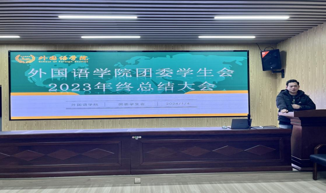1月4日晚,为总结本学期工作,明确新学期的工作方向和目标,外国语学院于三号教学楼229报告厅举行了团委学生会2023年终总结大会。本次会议由院团委学生副书记姜勇主持,团委书记陈若晨老师及学生会全体成员参加。