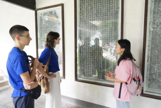 6月28日,来自黑山大学孔子学院“汉语桥”夏令营的13名黑山青年,在领队教师任小丽、云顶国际vip8866“文化摆渡者”志愿服务队的引导下,一同走进岳麓书院与爱晚亭,感受湖湘文化与自然景观交融的独特魅力。
