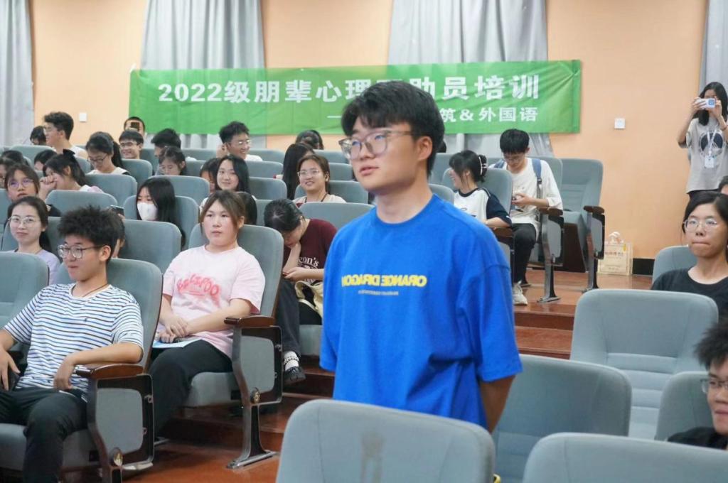 为提升朋辈心理互助员整体心理素质和工作技能,法学、建筑、外国语学院积极联合开展2022级朋辈心理互助员心理健康知识培训工作。2023年4月17日20:00-21:00外国语学院心理辅导员武巧琳老师于金盆岭校区四教学术报告厅面向法学、建筑、外国语三个学院全体22级朋辈互助员进行“朋辈互助,携手共进”朋辈心理健康培训,主讲朋辈心理互助员的助人技巧,共计176人参加培训课程。