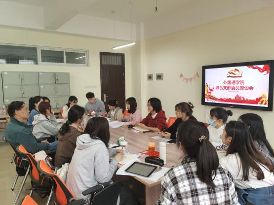 2022年5月10日下午三点,外国语学院学生党支部于文科楼A503召开联合支部委员座谈会,会议由党建辅导员毛婕主持,关工委张建军老师出席,本科生、研究生各支部委员会成员齐聚一堂,就支部换届后工作方向、工作重点、工作内容展开座谈和交流。