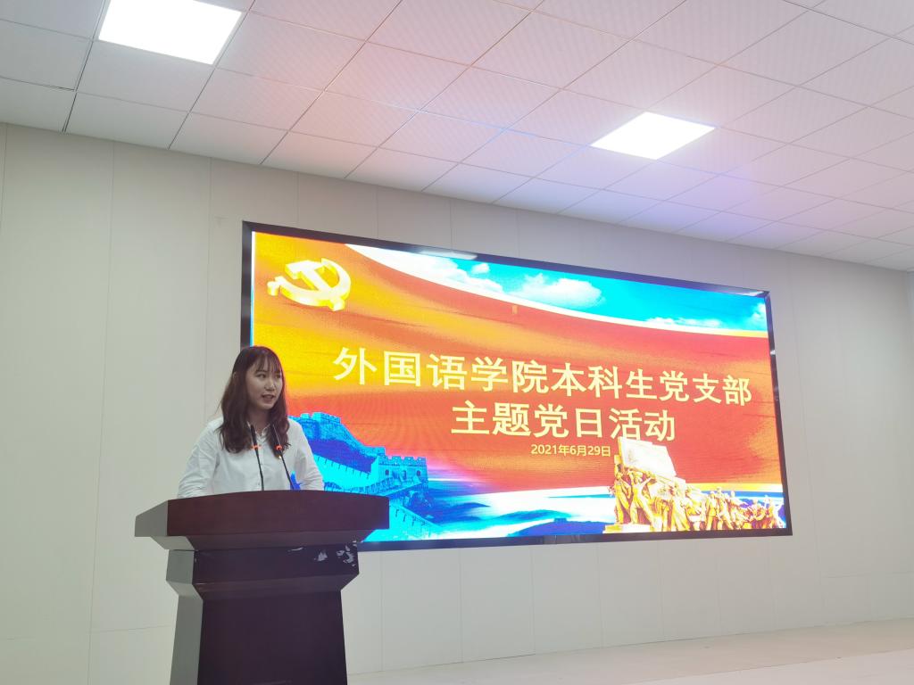 2021年6月29日下午3点,外国语学院本科生党支部在文科楼圆厅100学术报告厅开展学习习近平总书记关于安全生产重要论述主题党日活动。此次活动由党支部学习活动组陈宇倩主持,外国语学院本科生党支部全体成员参加。