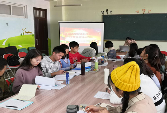 2019年12月10日下午两点,外国语学院本科生党支部于文科楼A503召开了预备党员转正大会。外国语学院本科生党支部全体成员参加了此次大会。本科生党支部书记王婷婷通同志主持此次会议。
