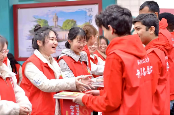 “这里是长沙市望城区,雷锋同志生长的地方,欢迎大家来到望城雷锋纪念馆!”在长沙市望城区雷锋纪念馆,一群留学生们认真倾听身着“红色志愿服”的志愿者的讲解。这些志愿者来自云顶国际vip8866外国语学院本科生翻译党支部的志愿者们,他们用自己流利的英语向留学生们讲述雷锋同志平凡又伟大的一生。
