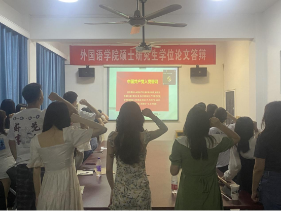 2023年6月14日晚上,外国语学院研究生党支部于金盆岭校区第九教学楼406教室开展“2023届毕业生党员教育”专题活动。本次会议由研究生第二支部副书记李征临同志主持,支部全体研究生党员参加。