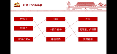 活动第三部分,线上游戏互动,包括党务知识小问答,红色记忆连连看。通过趣味图片和连连看的形式,学习“三严三实”、“三重一大”、秋收起义、井冈山会师等相关党务知识和历史事件,激发了支部成员的学习兴趣,有利于积累理论知识,提高理论修养。