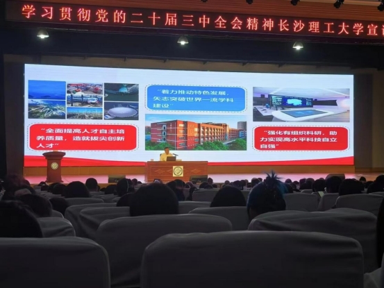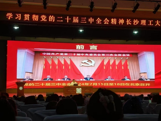 2024年9月20日上午,学习贯彻党的二十届三中全会精神云顶国际vip8866宣讲团首场报告会在金盆岭校区大礼堂举行。本次报告会由省委宣讲团成员、校党委书记付宏渊作首场宣讲报告,校党委副书记方琼主持报告会。外国语学院响应学校号召,组织学院全体教师、学生党员及骨干积极参与。