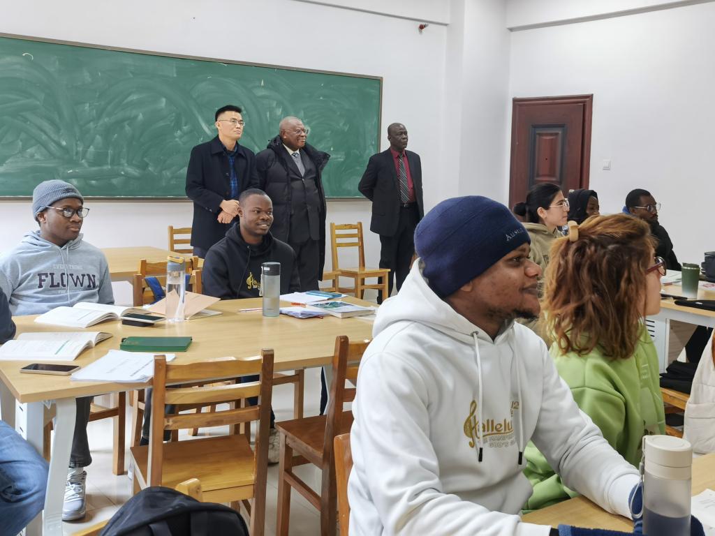 理事会会议结束后,利比里亚大学Sieh副校长及利大孔院中外方院长一行还去教室看望了正在上课的9名利比里亚留学生。Sieh 副校长和孔院中外方院长都鼓励他们抓住在中国留学的好机会,努力学习,为自己创造更美好的未来。利大孔院学子乔勇代表留学生们感谢校长、中外方院长的看望,表示一定会好好学习,不辜负利大孔院和云顶国际vip8866对他们的培养。