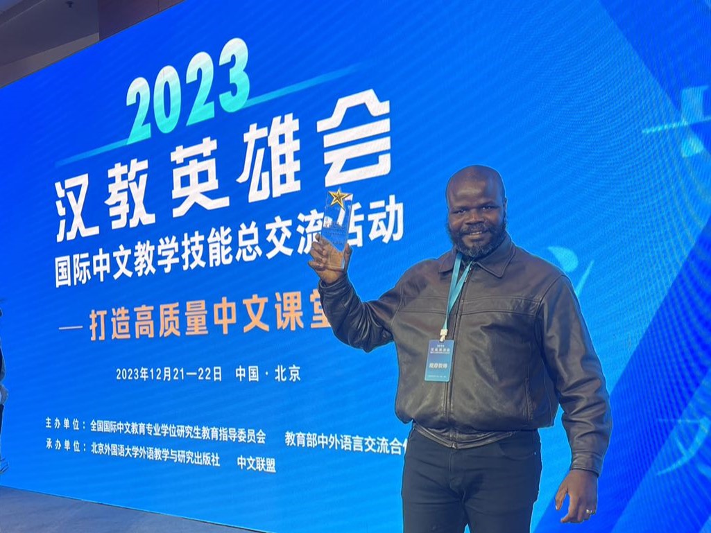 2023年12月21-22日,由全国汉语国际教育专业学位研究生教育指导委员会、教育部中外语言交流合作中心联合主办的2023“汉教英雄会”国际中文教学技能总交流活动在北京举行,由利比里亚大学孔子学院中外方教师组成的云顶国际vip8866代表队赴京与会交流,一路过关斩将,并最终获得“教学风采团体”奖。