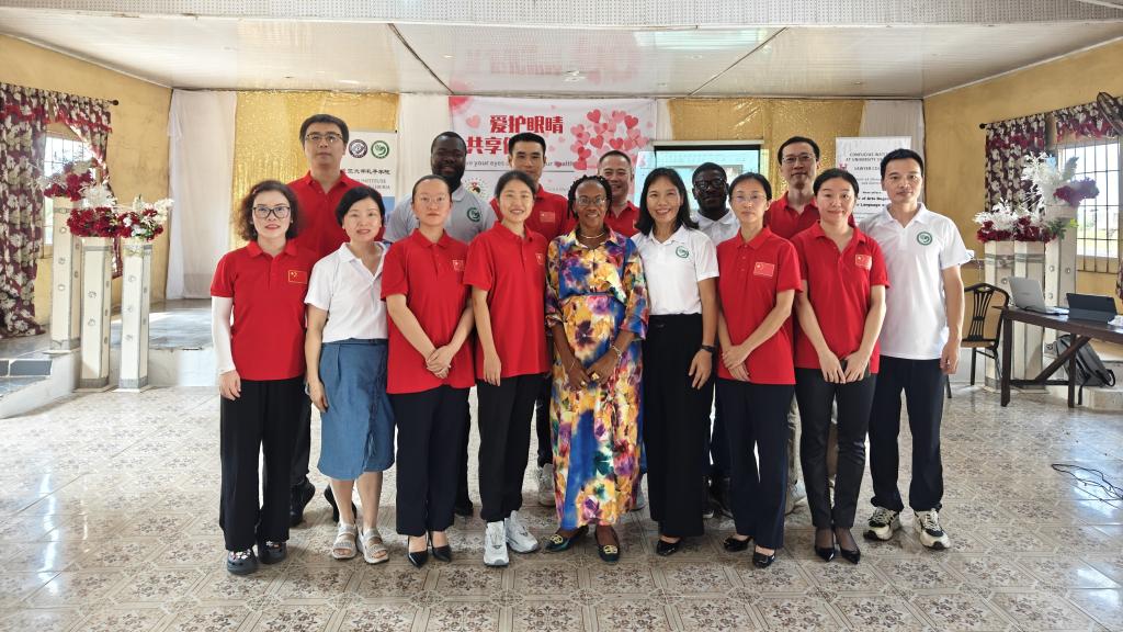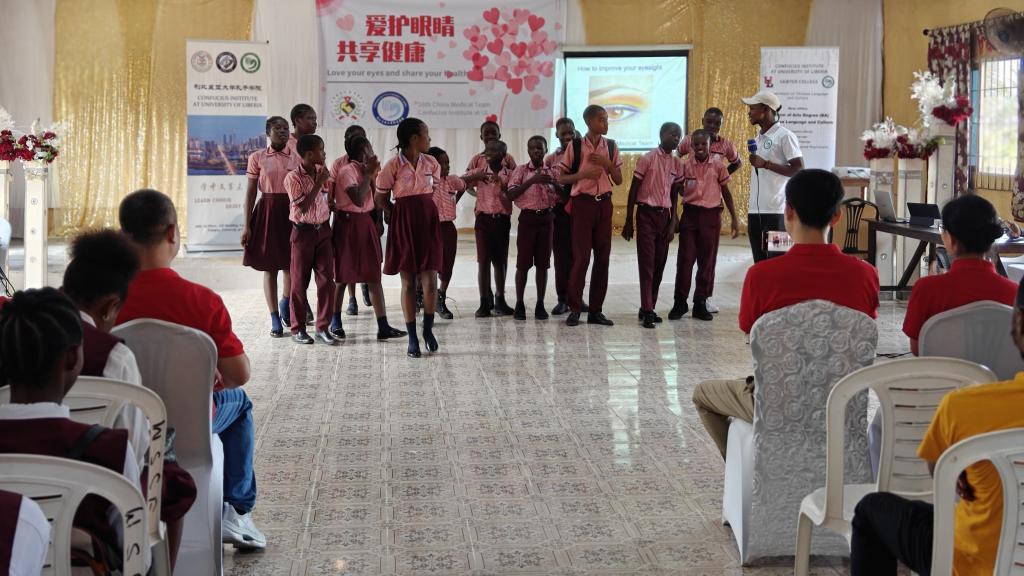 2024年3月22日上午,利比里亚大学孔子学院携手援利比里亚医疗队在利比里亚大学孔子学院圣语学校教学点共同举办了中国文化展示、中医护眼讲座及义诊活动。此次活动旨在关爱教学点师生健康、提高师生们对身心健康的重视,普及中医护眼知识,同时也为教学点中文班学生们展示中华文化魅力提供了舞台。利大孔院全体教师、医疗队全体队员及圣语学校全体师生近300人参加活动。