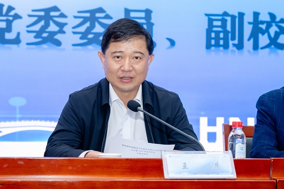 开幕式上,湖南科技大学党委委员、副校长王进代表湖南科技大学向与会代表致欢迎词,他介绍了湖南科技大学的办学发展历程,对承办本次大会的湖南科技大学外国语学院的工作予以高度肯定,并以自身作为从事计算机领域相关研究的科技工作者为出发点对科技翻译的未来发展思路提出了思考方向与建议。