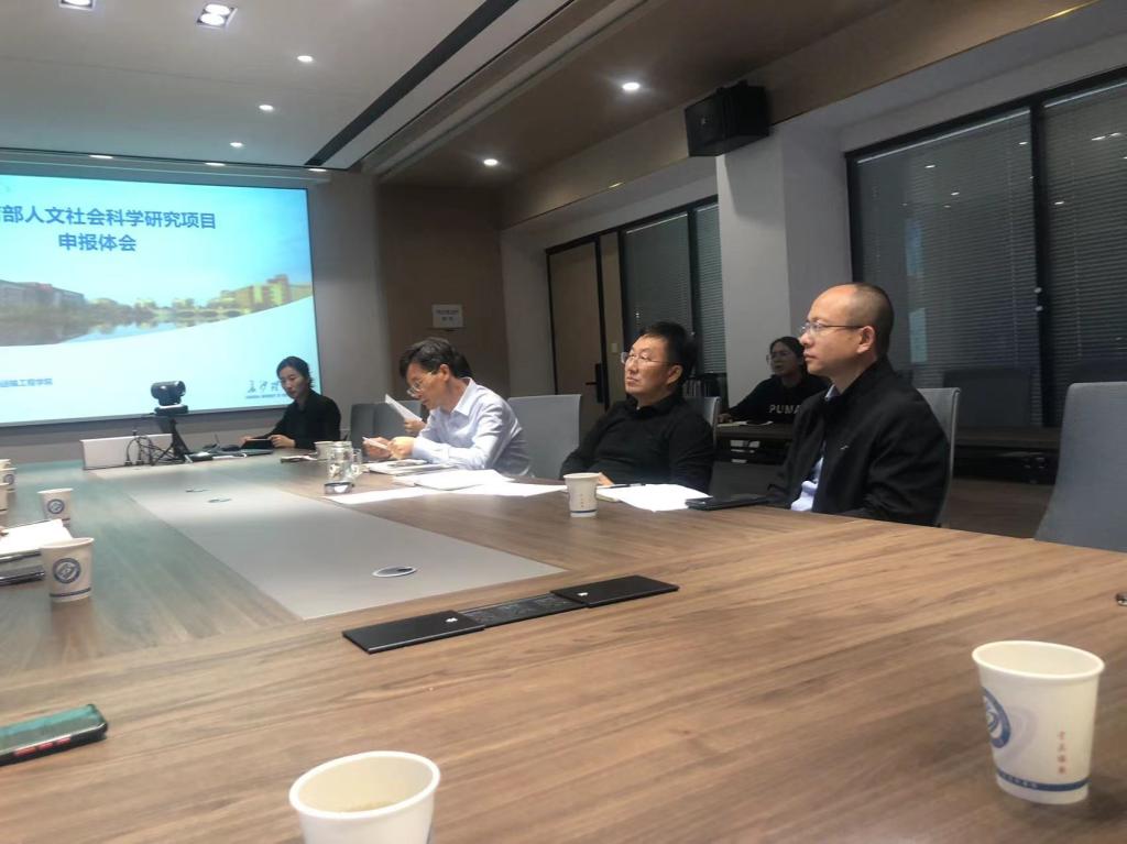 交通运输工程学院党委书记刘朝辉、院长张军辉、副院长杨建军、高英力等参与座谈,工程管理系于静老师就自己本年度申报国家自科基金项目和教育部人文社科基金项目的心路历程进行了交流分享。