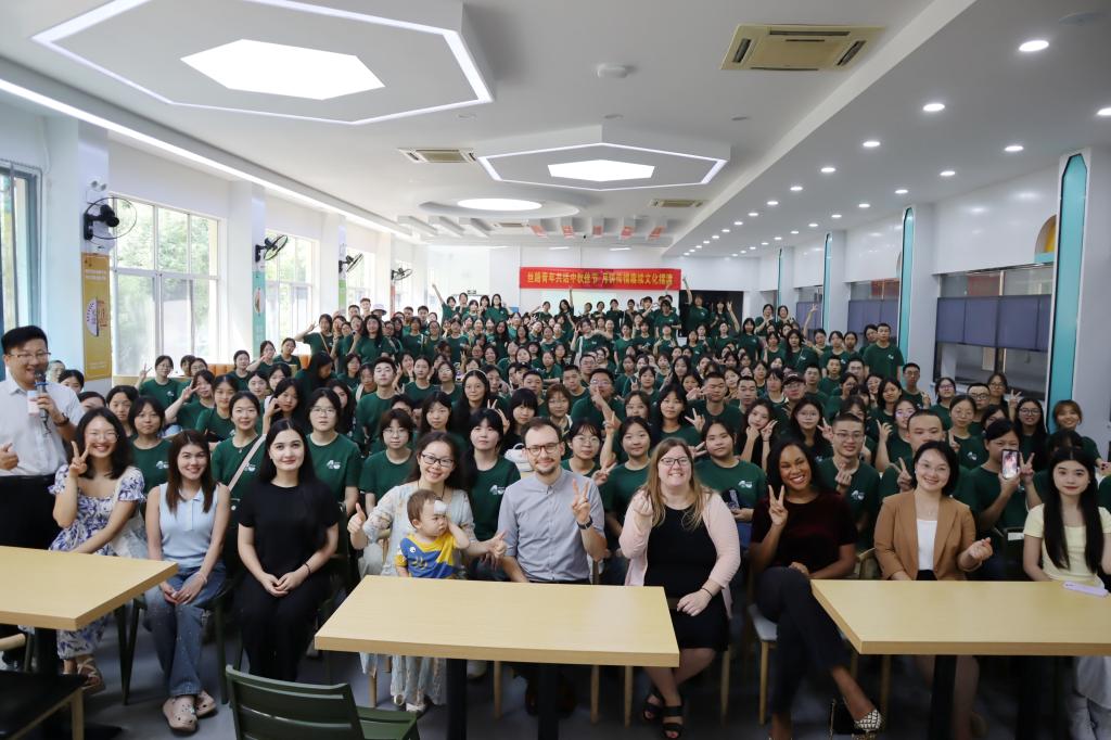 为欢度中秋佳节,促进2024级本科新生、教师代表、外教、国际工学院“一带一路”沿线国家留学生们之间的文化交流。9月17日上午,外国语学院于东苑教职工食堂2楼举办了“文化摆渡者”中秋文创月饼制作活动。外国语学院党委书记文丽丽、党委副书记周芳、辅导员、外教老师、“一带一路上”沿线国家上的丝路青年代表、2024级全体新生共同参加。本次活动由辅导员郭恒老师主持。
