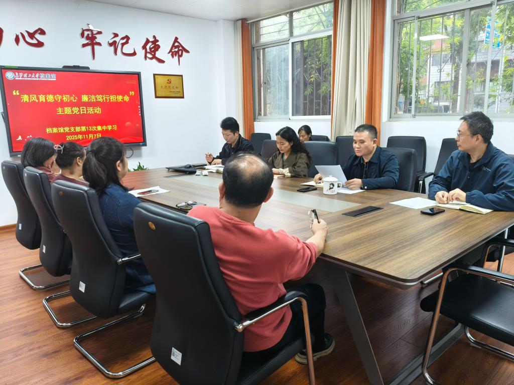 11月7日,档案馆党支部开展了“清风育德守初心 廉洁笃行担使命”主题党日活动,会议由支部副书记王任飞主持,档案馆全体教职工参加。