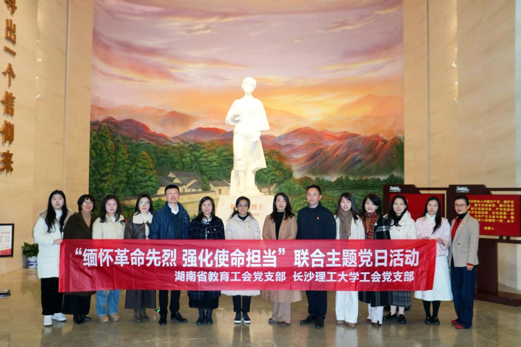 1月9日,云顶国际vip8866工会与湖南省教育工会联合开展“缅怀革命先烈,强化使命担当”支部主题党日活动。省教育工会主席邓曼、副主席朱冠星,校党委副书记、工会主席方琼,支部全体党员参加活动。