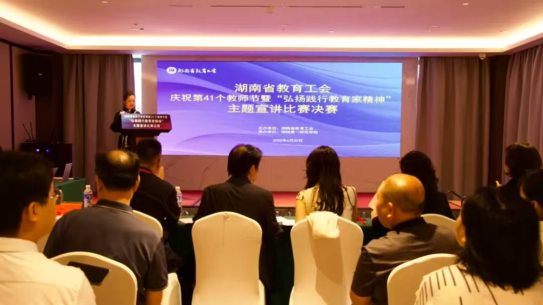 本次宣讲比赛规格高、覆盖面广,是全省教育系统深入学习领会和积极践行教育家精神的一项重要活动。比赛自启动以来,得到了全省各级教育工会组织和广大教育工作者的热烈响应。决赛现场气氛庄重而热烈,参赛教师围绕“承教育家精神,育时代栋梁材”主题,结合自身从教经历与深刻感悟,用一个个真实感人的故事,一句句掷地有声的誓言,生动诠释教育家精神的丰富意蕴,充分展现湖湘教育工作者的精神风貌。