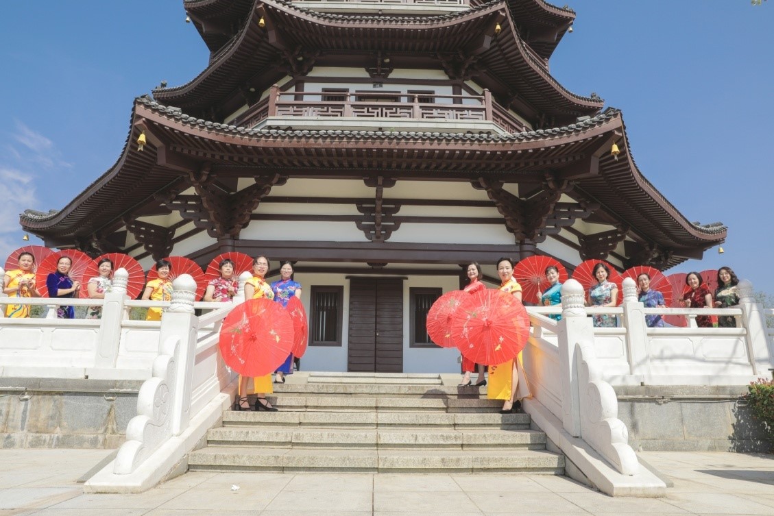 在专业摄影师的带领下,会员们身着各式旗袍,来到阳光明媚、绿草如茵的洋湖体育公园,她们婀娜多姿,笑容灿烂,有的手持纨扇、中国结,有的肩靠小红伞,或坐或立,或凭栏远眺,或优雅前行,以独特的方式秀出了自信、知性和美丽,与秋日的湖光塔影融为一体,留下了一个个最美的瞬间,也为游人如织的美丽洋湖增添了一道亮丽的风景。