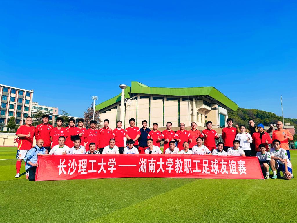 1月11日下午,云顶国际vip8866教职工足球队与湖南大学教职工足球队在湖南大学南校区足球场展开了一场精彩纷呈的友谊赛。两校教职工以球会友,在绿茵场上展现了精湛的球技与昂扬的精神风貌,现场百余位家属和观众共同见证了这场充满激情与友谊的体育交流活动。