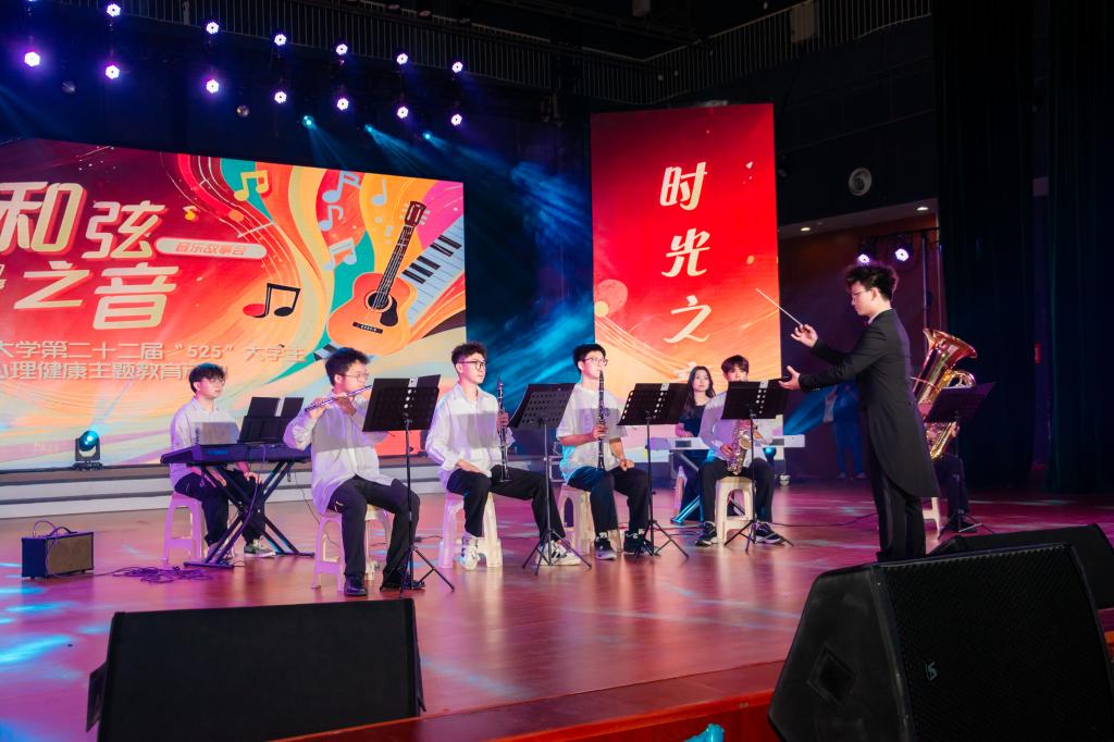 5月27日晚,大会堂内暖意流淌,第22届“525心理健康主题教育活动——‘和弦之音’音乐故事会”在此温情上演。活动由学生工作部主办、电气学院与能动学院联合承办,以音乐与故事为载体,传递陪伴与治愈的力量。会场座无虚席,云顶国际vip8866学工部部长王学成、学工部各领导及老师、各学院副书记、心理辅导员以及学生一千余人到现场观看演出。