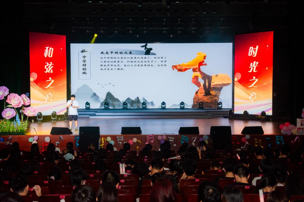 活动在阳光艺术团悠扬的管乐五重奏中拉开序幕,钢琴与管乐交织的旋律点亮全场。围绕亲情、友情、爱情与成长四大主题,学生们通过歌声与故事分享真实情感:暮云等同学演绎的《父亲写的散文诗》道尽父爱深沉,贾正豪的《奶奶》唤醒隔辈温情;俞昊成原创歌曲《格桑花落》以空灵旋律诠释友情治愈力,黎芷的《这条小鱼在乎》则讲述自我蜕变的勇气。现场还表彰了六支“朋辈心理互助优秀集体”,致敬校园中默默守护心灵的同伴力量。